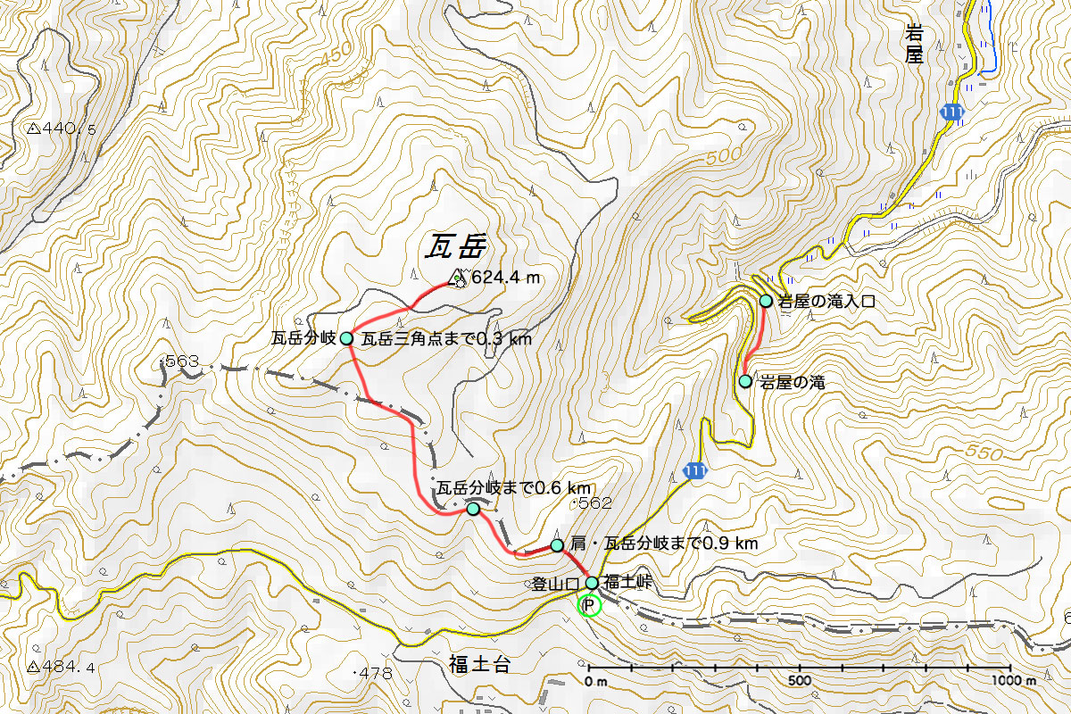 2026年2月22日(日) 北九州 - 国道3号 - 国道10号 - 10:47 道の駅「しんよしとみ」- 国道10号 - 県道109号 - 県道111号 - 岩屋 - 11:30 福土峠(岩屋峠) 11:37 福土峠瓦岳登山口 (509 m) - 11:50 肩・瓦岳分岐まで0.9 km (555 m) - 11:56 瓦岳分岐まで0.6 km (550 m) - 12:16 瓦岳分岐まで0.1 km (590 m) - 12:21 瓦岳分岐・瓦岳三角点まで0.3 km (615 m) - 12:31 作業道 - 12:34 防災無線中継所 - 12:35 瓦岳山頂 (624.2 m) - 12:56 瓦岳分岐 - 13:00 瓦岳分岐から0.1 km - 13:19 瓦岳分岐から0.6 km - 13:28 瓦岳分岐から0.9 km - 13:37 福土峠 福土峠 - 県道111号 - 13:46 岩屋の滝入口 - 13::53 岩屋の滝 - 14:09 岩屋の滝入口 - 県道111号 - 県道109号 - 国道10号 - 14:42 道の駅「しんよしとみ」 - 国道10号 - 北九州 |