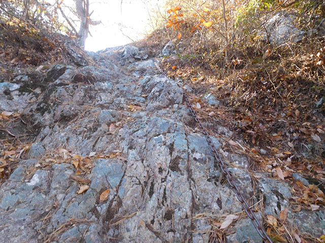 ![]() 鎖場の岩壁 10:44 標高 555 m |