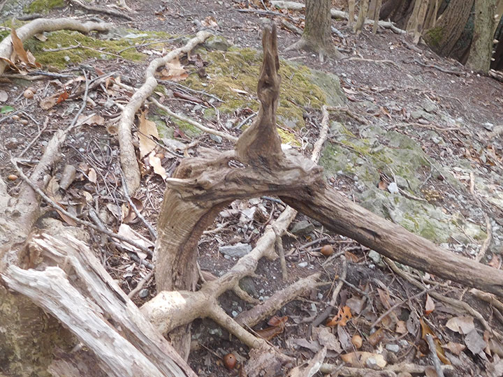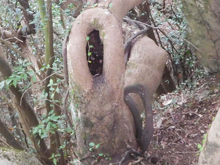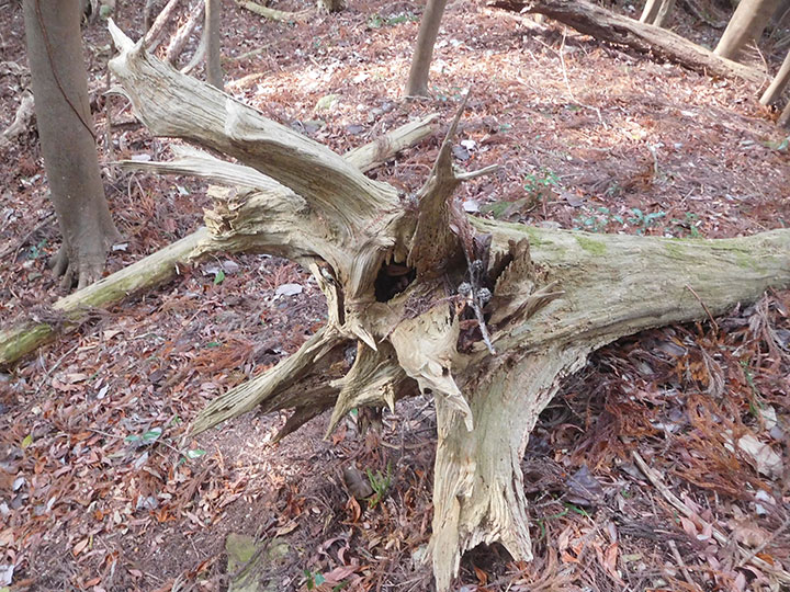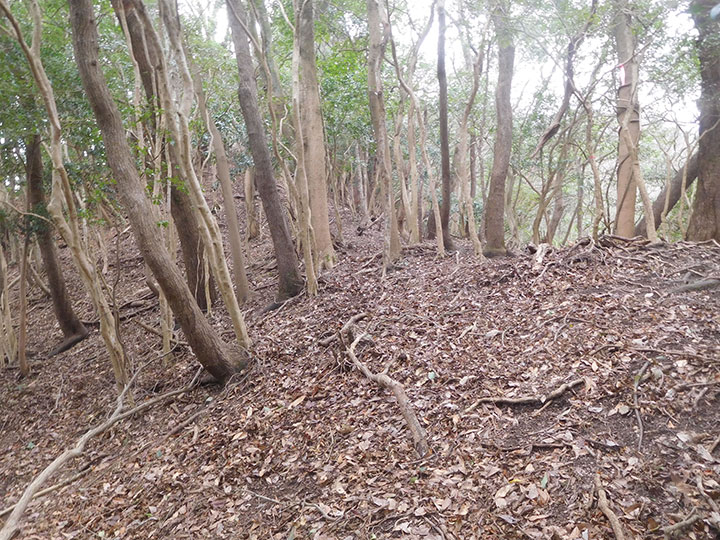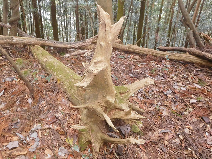 今年最後の山は前回同様,国東半島の山でした。 ずっと赤テープがついていて,登山道はわかりやかったけれど,傾斜がきつい山でした。 トラロープが張られたところもありましたが,最も傾斜がきつい上部の坂で,ロープもなく,難儀した箇所がありました。 さらに登山路には落ち葉が堆積していて,帰りは尻すべりでした。