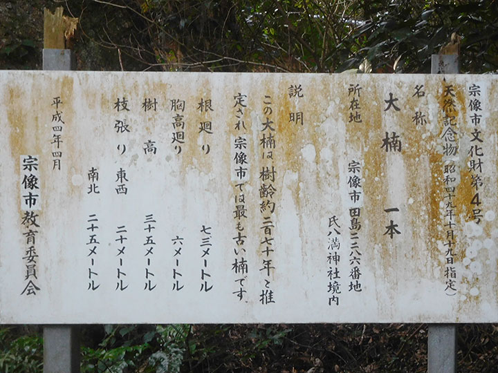![]() 宗像市天然記念物・説明板 14:08 標高 20 m |