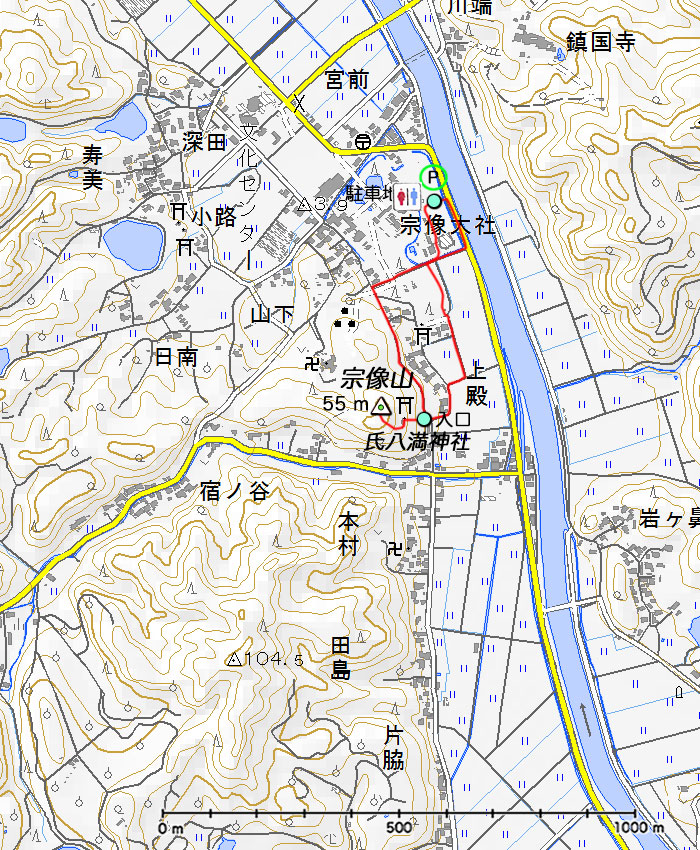 ![]() 宗像神社第二駐車場 13:45 標高 5 m |