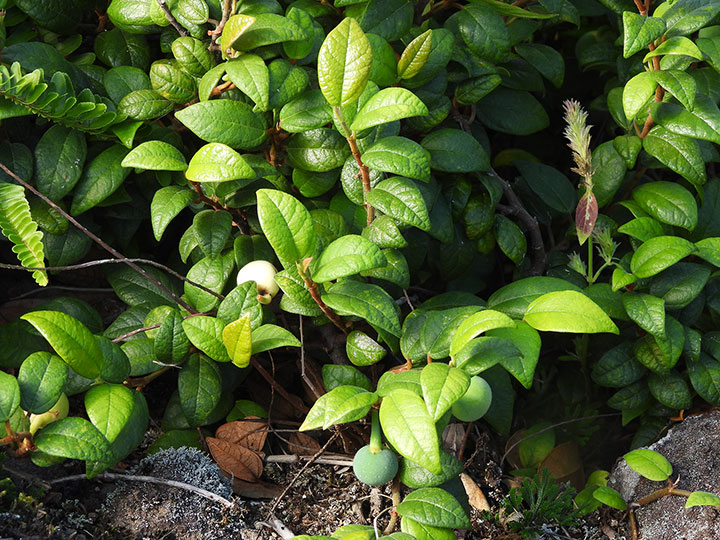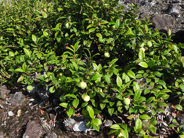暖地の林内に生育する常緑藤木。幼苗の茎には開出する毛が密生する。枝は暗褐色で気根をだし,若枝や葉柄には毛が密生する。枝や葉を折ると白い乳液がでる。托葉は3角状披針形 - 3角状卵形,先は鋭くとがり,長さ 3 - 4 mm,背面や縁に長毛が散生する。葉柄は長さ 3 - 10 mm,褐色の開出する毛を密生するが,のちにやや無毛になる。葉は互生し,長さ 2 - 6 cm,幅 1 - 3 cmの卵形または卵状楕円形,先端はややとがり,基部は円形,成木の葉は全縁だが,幼木の葉には大きな歯牙が2 - 3個ある。質は厚く,はじめ褐色の開出毛が密生するが,のちに毛は少なくなる。裏面は淡緑色で葉脈がきれいに浮きでる。側脈は4 - 6対,主脈から50 - 60度の角度で分岐する。葉柄は長さ3 - 10 mm,初め褐色の開出毛が密生する。雌雄異株。葉腋に1個の花嚢をつける。下部総苞葉は3枚,卵形で先は鈍く,背面に長毛がやや密に生え,果期には落ちる。花嚢の柄は長さ約 5 mm,褐色の軟毛が密生する。花嚢は雌雄同形。花嚢は球形で径約 1 cm,表面に白色の毛が散生する。果嚢は直径 2 cmほどの球形,灰褐色に熟す。 花期: 7 - 8月 果期:10 - 11月 分布:本州(千葉県以西)・四国・九州・琉球;朝鮮半島(済州島) Ficus イチジク属: アコウ イタビカズラ イヌビワ オオイタビ ヒメイタビ |