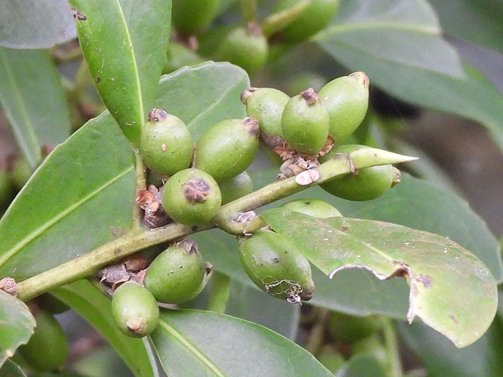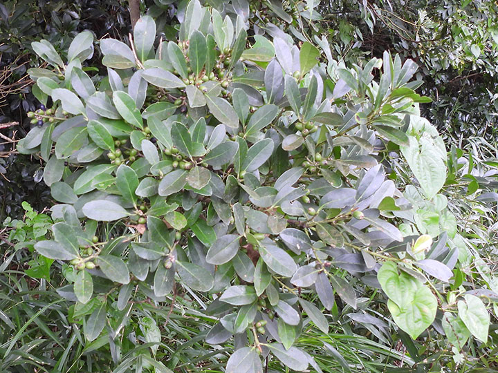 沿岸域の照葉樹林に生育する常緑小高木。高さ 8 - 12 m。幹は直径 10 - 30 cm。樹皮は黒褐色で滑らかで,小さい皮目がある。若枝は淡黄緑色で稜があり,無毛。葉は互生し,長さ 4 - 7 cm,幅 2 - 3 cmの楕円形または長楕円形,先は鈍頭 - 鋭頭,基部はくさび形。縁は全縁または上部に波状の浅い鋸歯がある。革質で,表面は光沢があり,主脈は隆起し,両面とも無毛。葉柄は長さ 7 - 15 mm。前年枝の葉腋にきわめて短い穂状花序をだし,白い小さな花を密集させてつける。萼は5裂し,萼片は卵円形。花冠は直径 7 - 8 mmで5深裂する。雄ずいは花冠よりも長く,25 - 40本。雌ずいは1個,花柱は細長く,柱頭は頭状。果実は核果で,長さ 1 - 1.5 cm の長楕円形,10 - 11月に黒紫色に熟す。種子は楕円形で長さ約 5 mm。 花期:3 - 4月 分布:本州(中国地方)・四国・九州;済州島,台湾 Symplocos ハイノキ属: クロキ サワフタギ タンナサワフタギ ハイノキ |