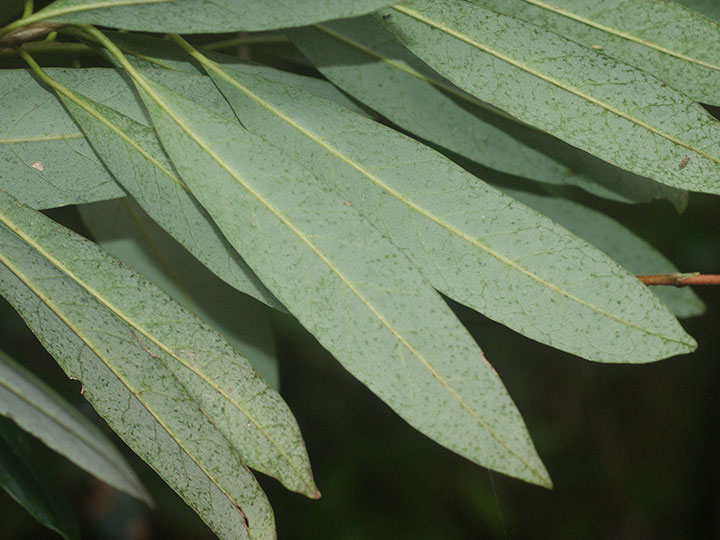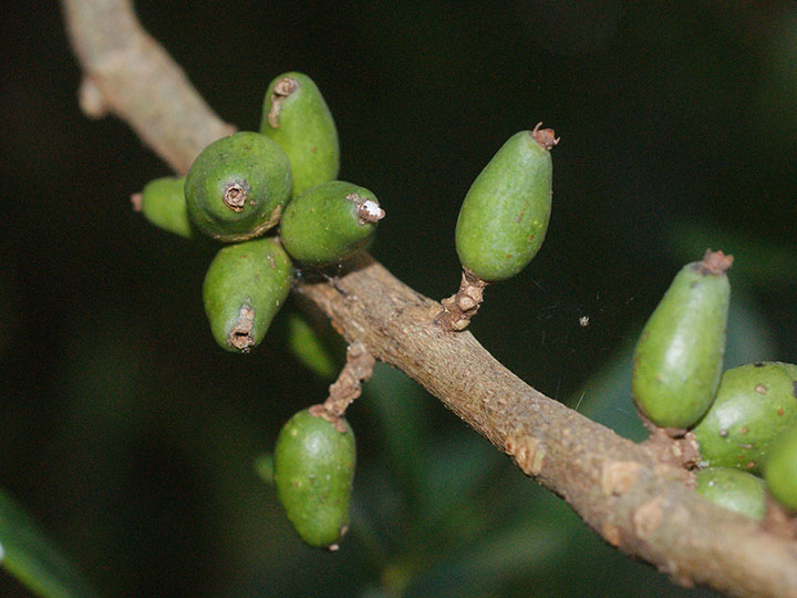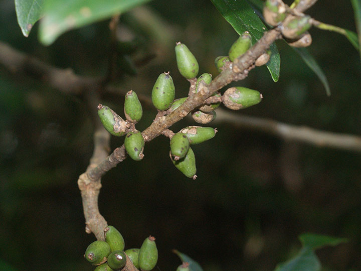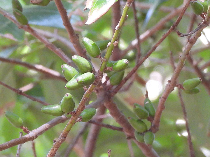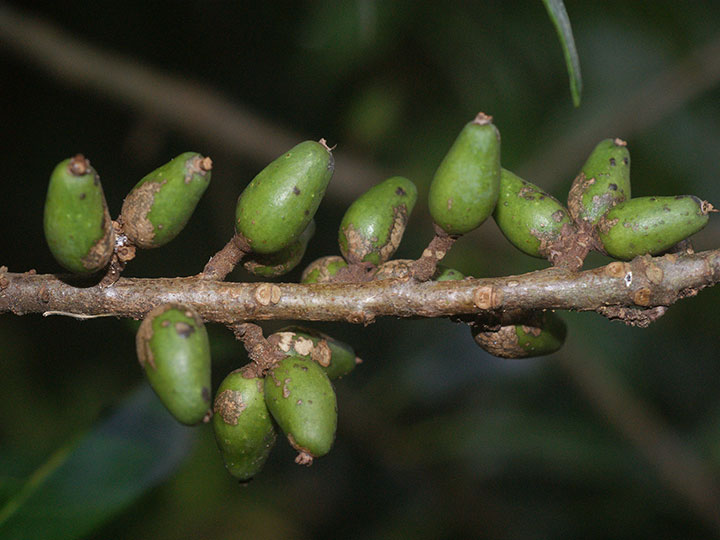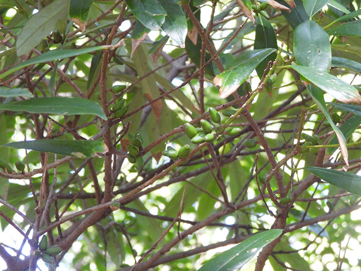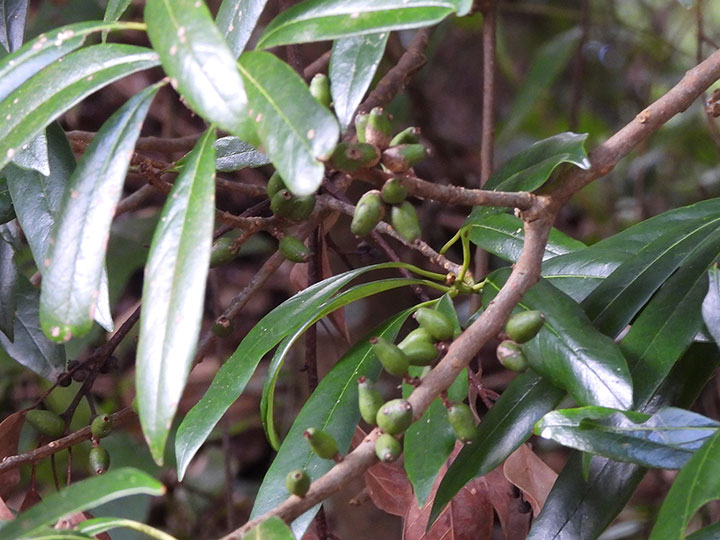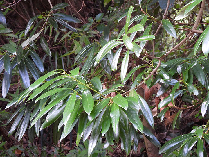 暖地の照葉樹林内に生育する常緑小高木。高さ10 - 15 m,直径 10 - 40 cm。樹幹の樹皮は灰褐色または赤褐色で滑らか。若枝はには鈍い稜があり,褐色の毛が毛があるが,後に無毛となり,赤褐色を帯びる。葉は互生し,長さ 8 - 16 cm,幅 2 - 4 cmの狭長楕円形,鋭尖頭,基部はくさび形,葉縁は裏側に少し巻き込み,全縁または先の方に不明瞭の浅い鋸歯がある。革質で,表面は光沢があり,裏面は灰白色を帯び,両面とも無毛。葉柄は長さ 1 - 3 cm。葉腋から総状花序をだして,多数の花を密につける。苞や萼には褐色の綿毛が密生する。萼は5裂する。花は直径約7 mm,花冠は5深裂し,裂片は楕円形で先端は丸い。雄ずいは多数あり,花冠より長く,葯は紫色を帯びる。雌ずいは1個,花柱は細く,柱頭は頭状で小さい。果実は核果,卵状楕円形で,長さ 1.2 - 1.5 cm,翌年の10 - 12月に黒紫色に熟す。核は卵状楕円形で長さ約 1 cm。 花期:7 - 8月 別名:ミミズノマクラ,ミミスベリ,トクラベ 分布:本州(関東地方南部以西)・四国・九州,沖縄;中国,台湾,インド,ミャンマー,タイ,ベトナム Symplocos ハイノキ属: クロキ サワフタギ タンナサワフタギ ハイノキ ミミズバイ |